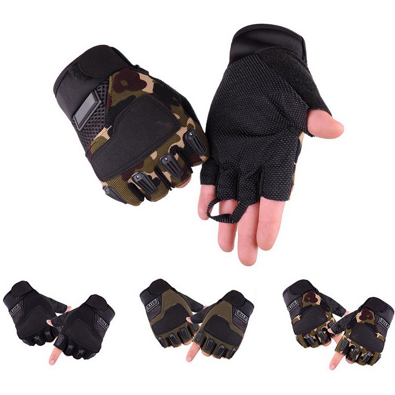 1 pair of anti-slip sport camouflage riding gloves, half finger riding gloves