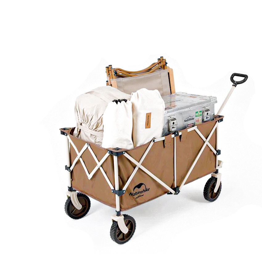 Xe kéo dã ngoại gấp gọn được sử dụng chủ yếu giúp người dùng vận chuyển đồ dùng cần thiết khi đi cắm trại, dã ngoại. khi chuyến đi của bạn quá nhiều đồ thì xe kéo xếp gọn trở thành món đồ cắm trại không thể thiếu. Với thể tích lớn Xe kéo dã ngoại xếp gọn TC02 Naturehike NH20PJ005 là gợi ý hoàn hảo cho những chuyến camping, glamping nhiều người. - Khoang chứa đồ Với 2 mức thể tích 193L và 210L (Big wheel) giúp bạn có nhiều sự lựa chọn hơn - 4 bánh xe thiết kế xoay 360 độ linh hoạt trong di chuyển - Thiết kế đơn giản, dễ sử dụng, có thể gấp lại gọn gàng mang theo trong mọi chuyến đi - Tay kéo chắc chắn, linh hoạt điều chỉnh độ dài tay kéo - Làm từ chất liệu: khung thép ống, PVC, PP, vải Oxford 600D, bánh xe chịu lực - Phiên bản 193L, độ dày bánh xe 3.5 cm có tải trọng tối đa 80 kg - Phiên bản 210L có thiết kế bánh xe tăng độ dày lên 9.5cm, giúp tăng khả năng chịu lực, nâng tải trọng lên 100kg - Kích thước sử dụng: 193L: 106x53x100 cm 210L: 106x62x98 cm - Kích thước xếp: 193L: 30x23x62 cm 210L: 38x29x61 cm - Khối lượng: 193L: 10kg 210L: 13kg - Màu sắc: Nâu